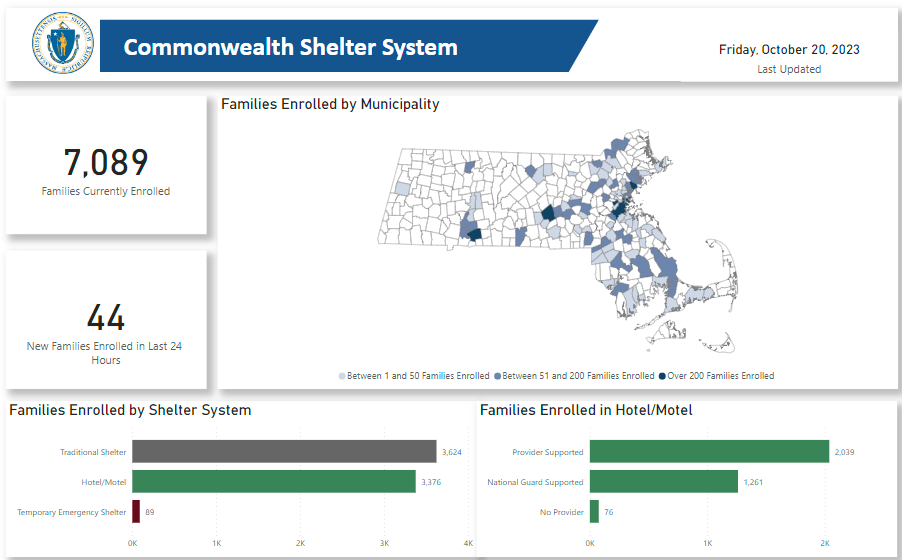 The Emergency Assistance Placement Data Dashboard provides daily updates on shelter placements in Massachusetts cities and towns.