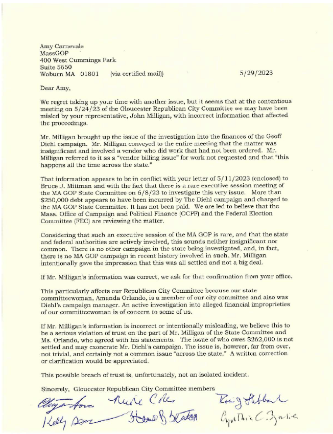 - Gloucester MA GOP. (2023b, May 28). Follow up to May’s Monthly Meeting.